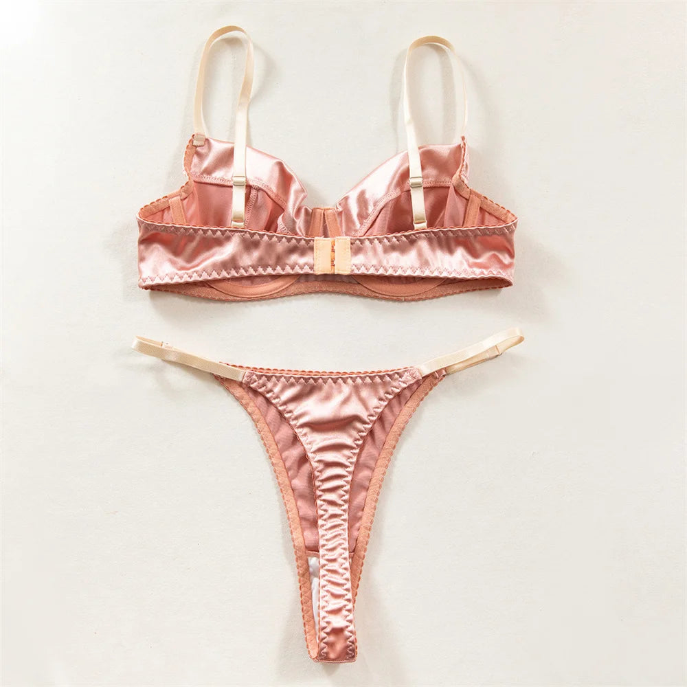 Crafted in smooth satin with delicate patchwork detailing, Azure Satin Set™ contours the body with a sculpted bra and a sleek thong. The deep azure tone adds a modern touch of luxury, enhancing confidence with understated allure.