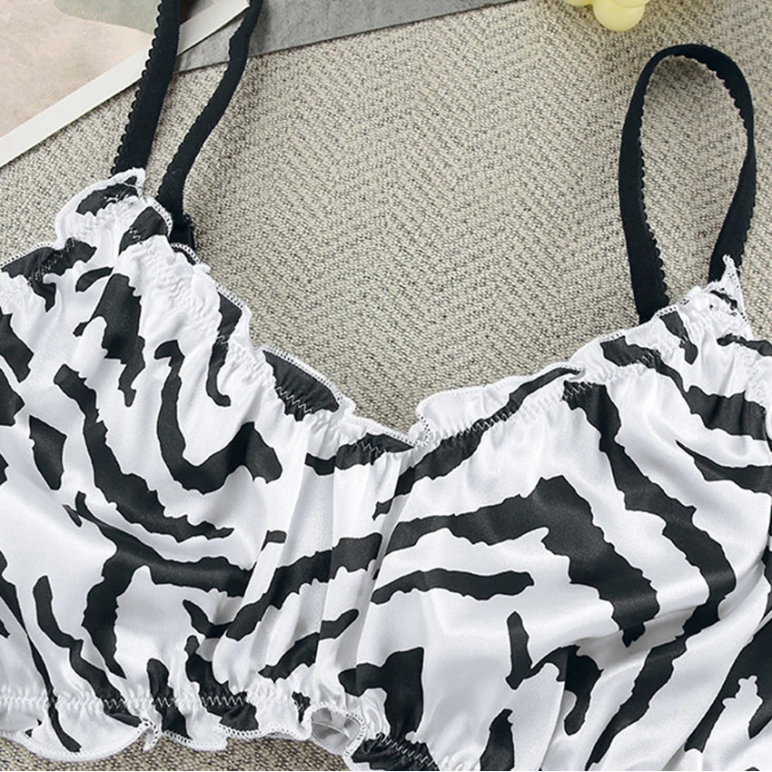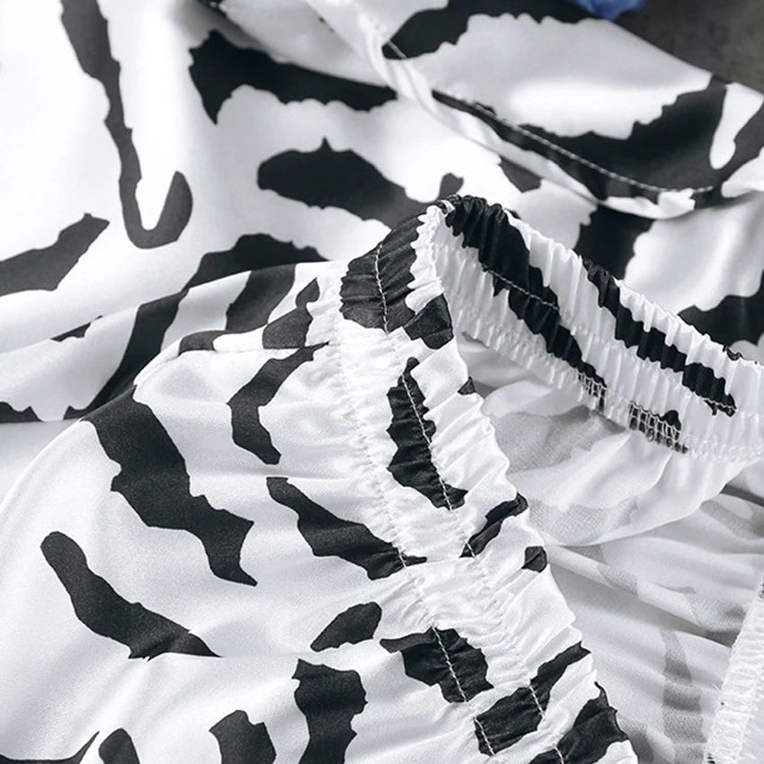 Designed to feel light on the skin, this two-piece sleepwear set balances sensuality and sophistication with a refined animal-inspired print. Its flattering silhouette and breathable fabric make it perfect for elevated lounging, slow mornings, and confident nights at home.